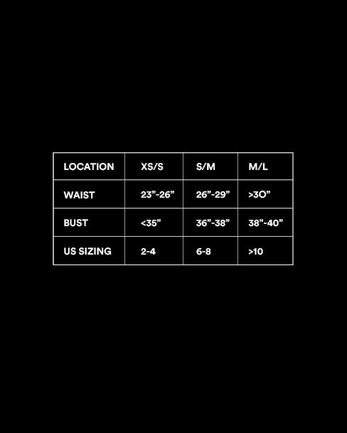 IMPORTANT NOTE: The corset tank sizing is larger than our minimal tank and our first batch uses "slash" sizing (i.e. bag says XS, but the size is XS/S). As a reference, our XS in the padded minimal tank is 0-2, while the XS in the corset tank is 2-4.