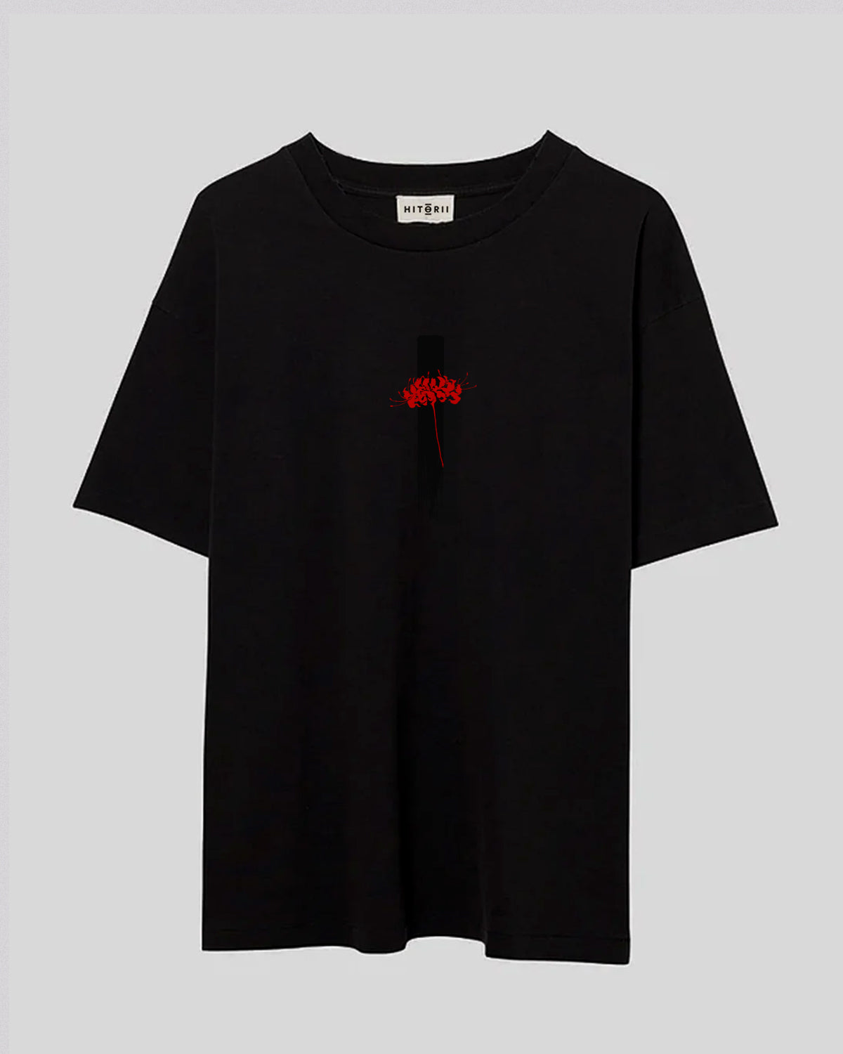 Embroidered Spider Lily /// Oversized Tee /// Black