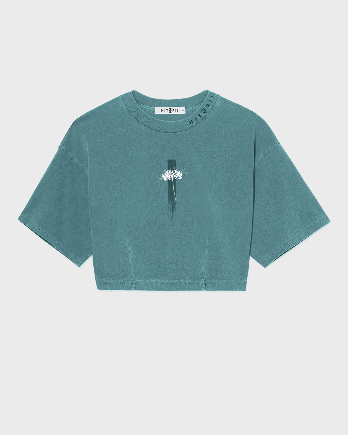Embroidered Spider Lily | Cinch Crop Tee | Teal