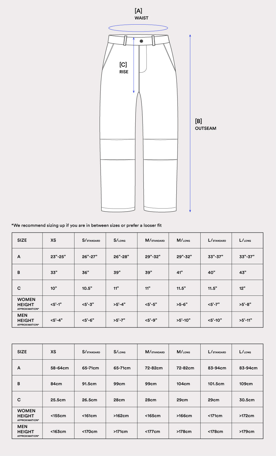 We designed them with an oversized fit and pleated knees to ensure mobility and provide room for layering. This way you can stay warm while resting and minimize weight when sending.