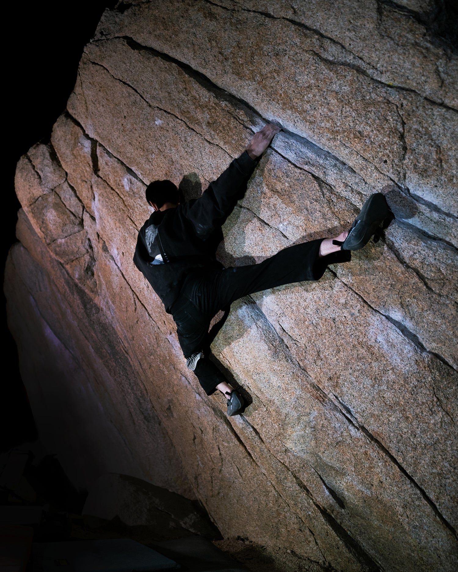 The Hitorii Bouldering Pant also features adjustable waist and ankle cuffs through an elastic band and rubber stop mechanism, placed on the inside of the pant to stay hidden.