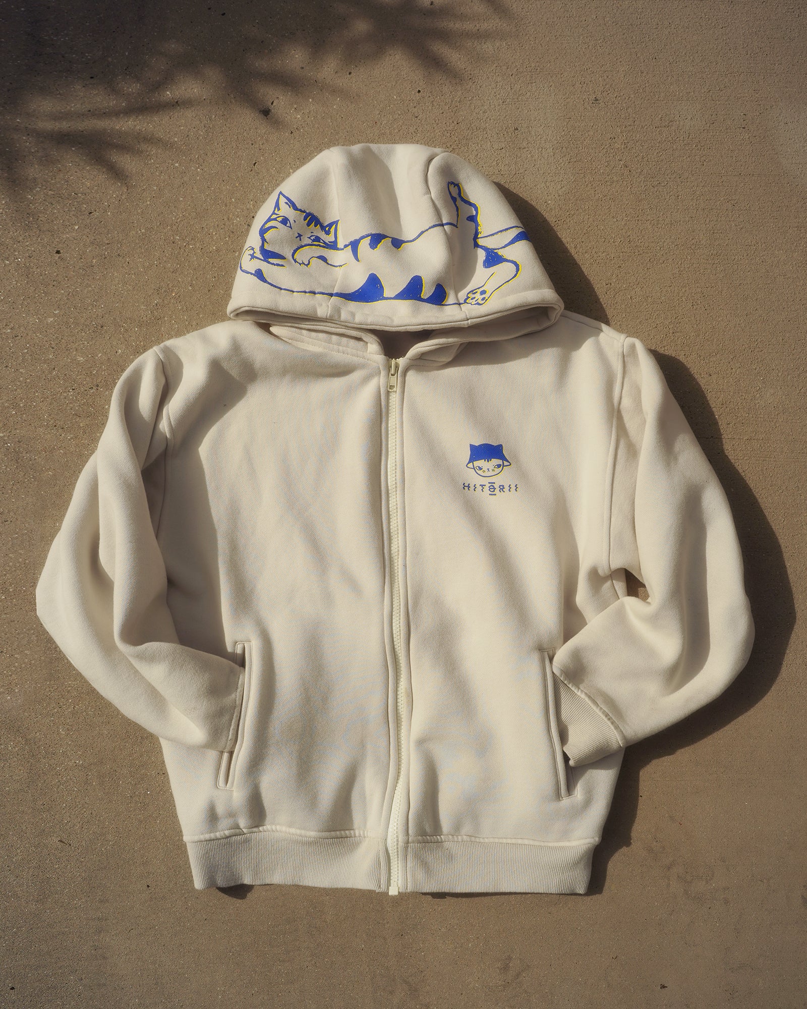 Lounging Mao | Zip Hoodie | Cream x Blue